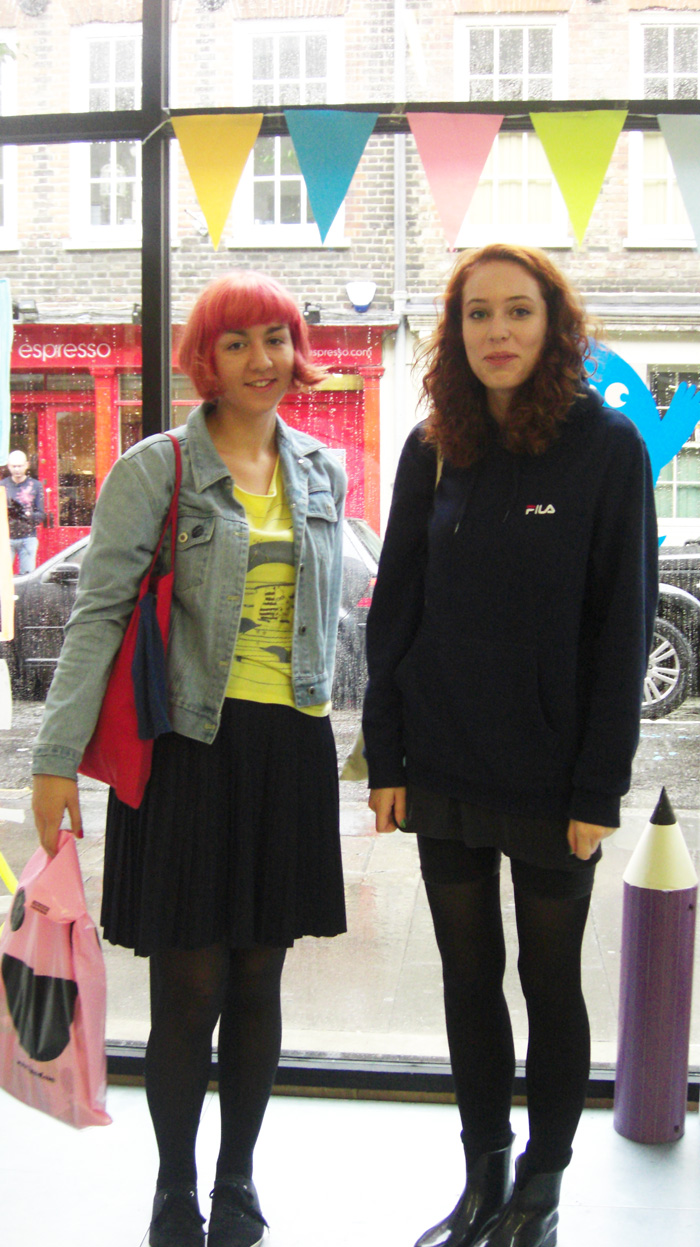 The girl on the right impressed us by coming along in our long forgotten Block Head Repeat Hoodie and Jazzy Jeff Barrel Bag.