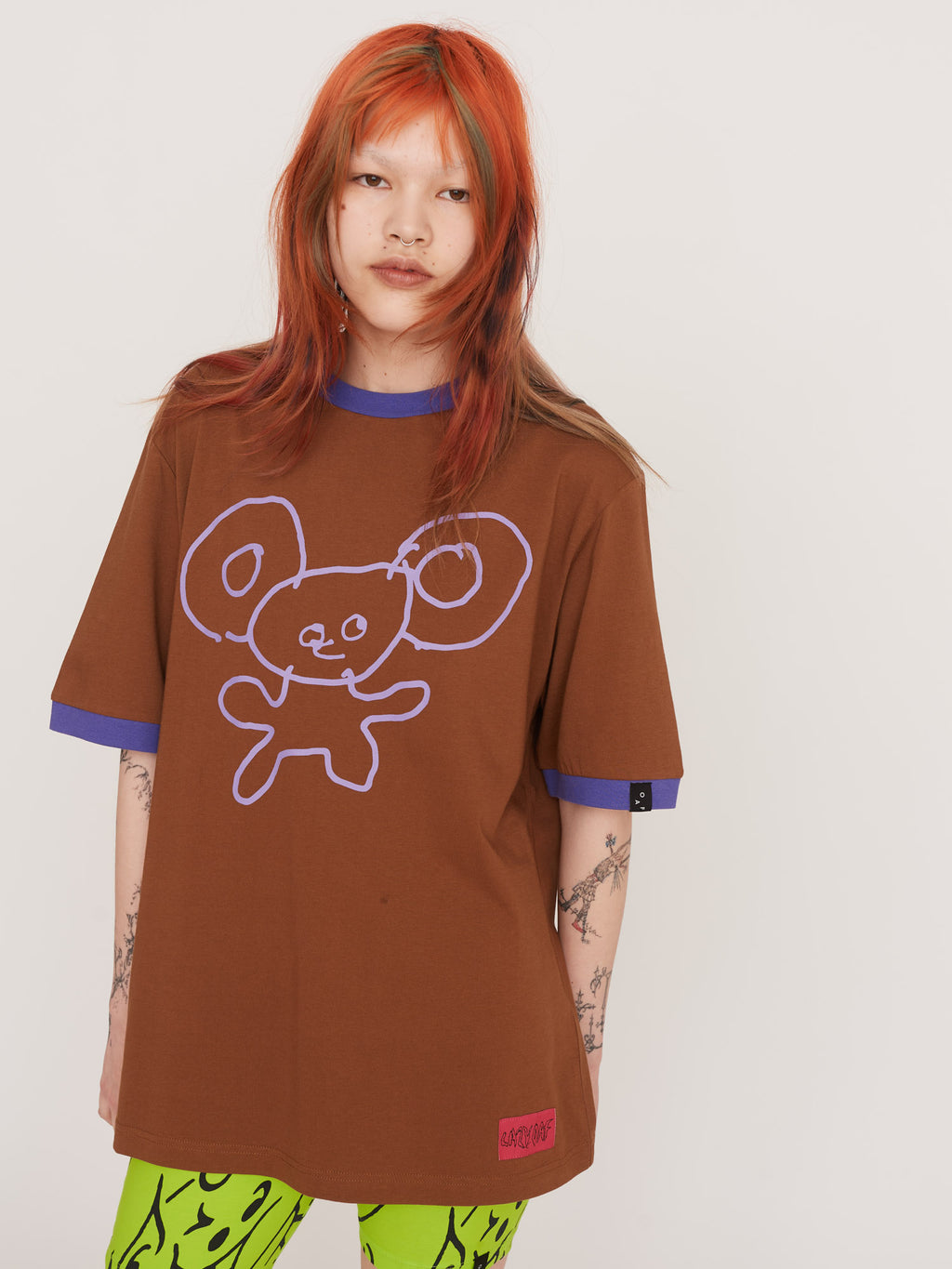 Made in super soft 100% organic cotton, this is our classic genderless shape that suits everybody. It’s a relaxed fit, with contrast neck and hems, and a mouse graphic designed by our founder, Gem.