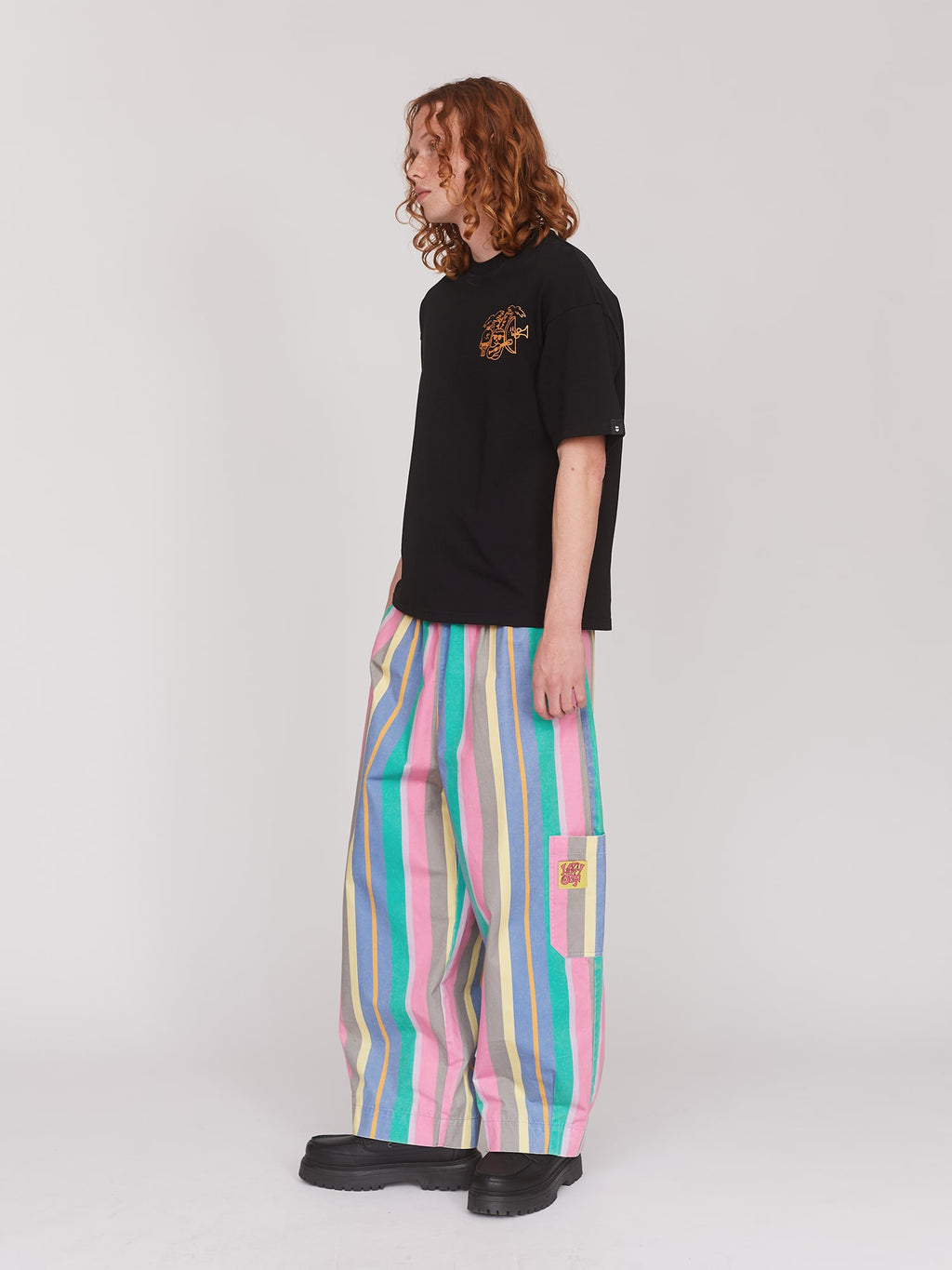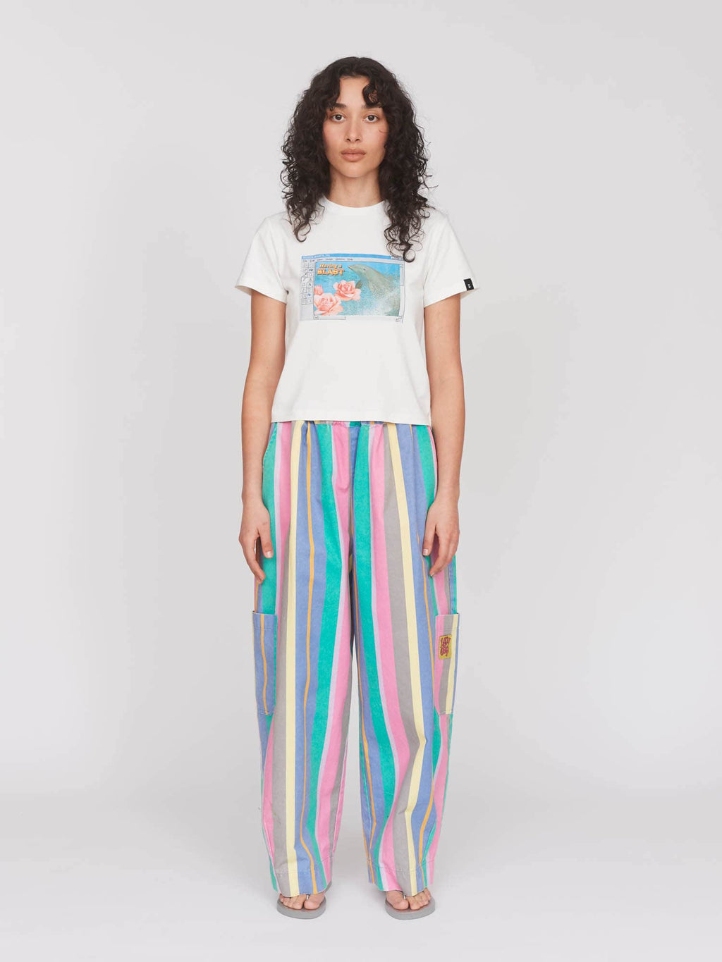 Summer’s here and all you need is clothes that are minimal effort but have maximum impact. Well, look no further than these pull-on trousers. In a barrel leg, they have a fully elasticated waistband and have cargo-style, side seam and a back patch pockets. Made from a striped, washed 100% cotton fabric, you’ll be living in these trousers all season long.