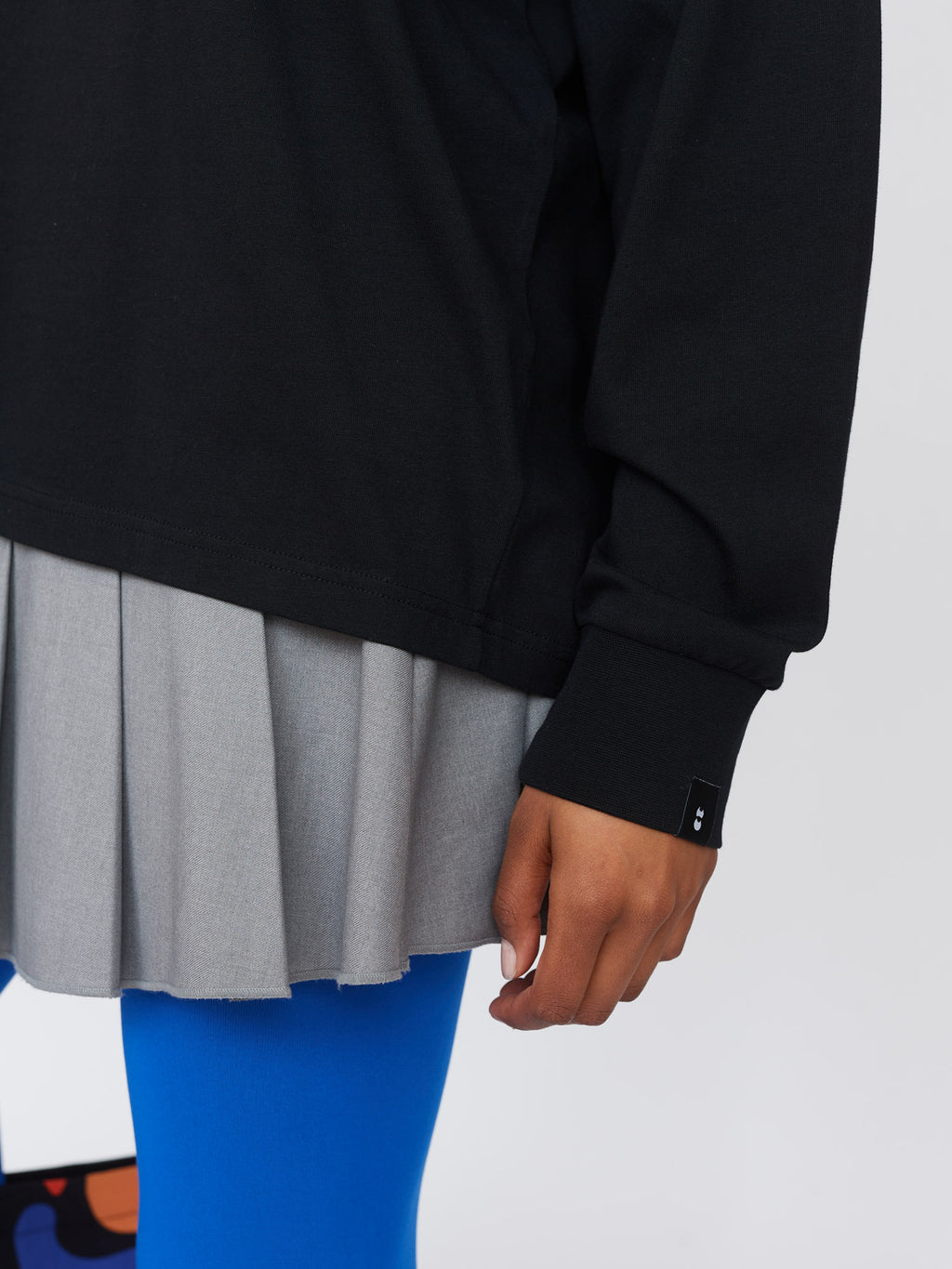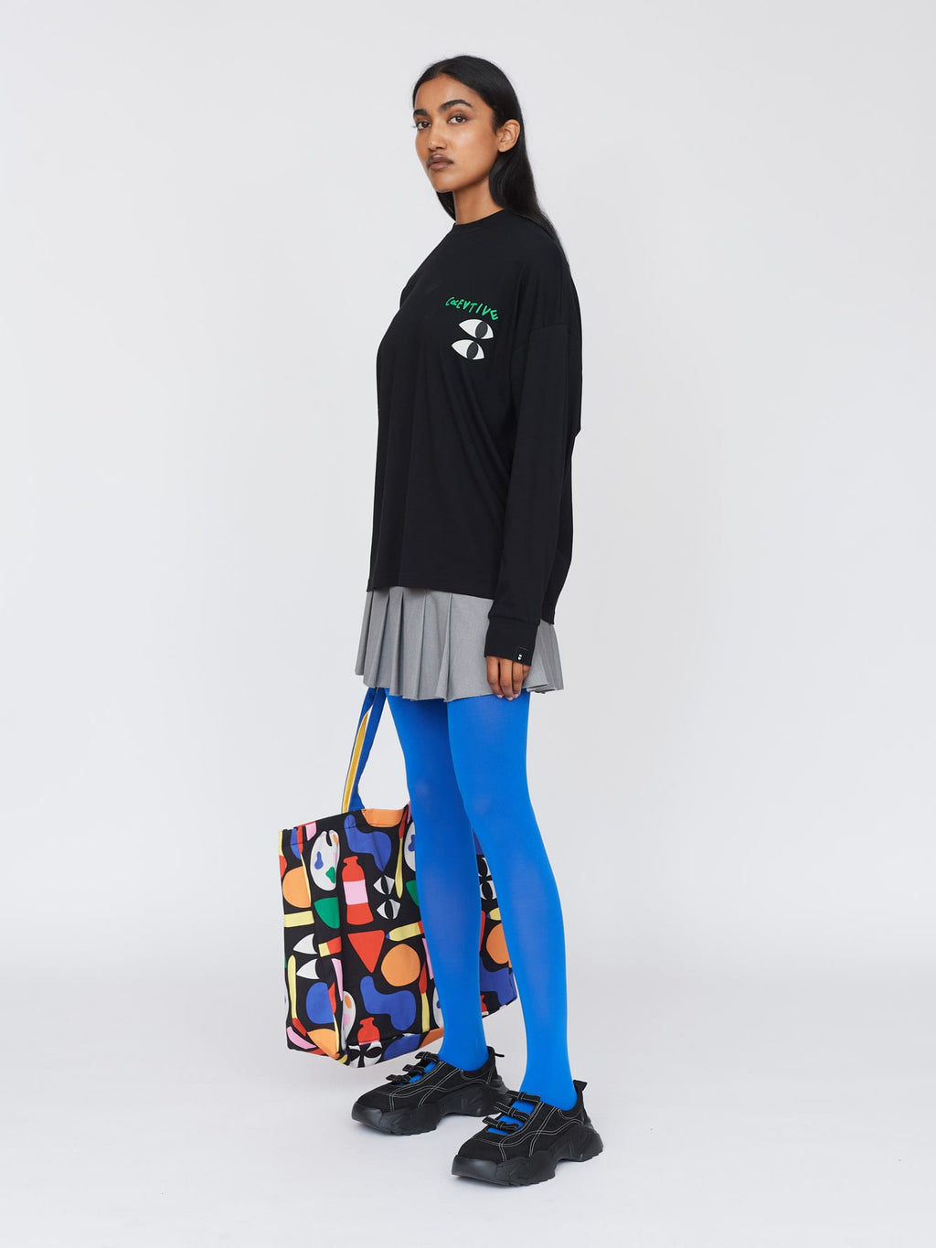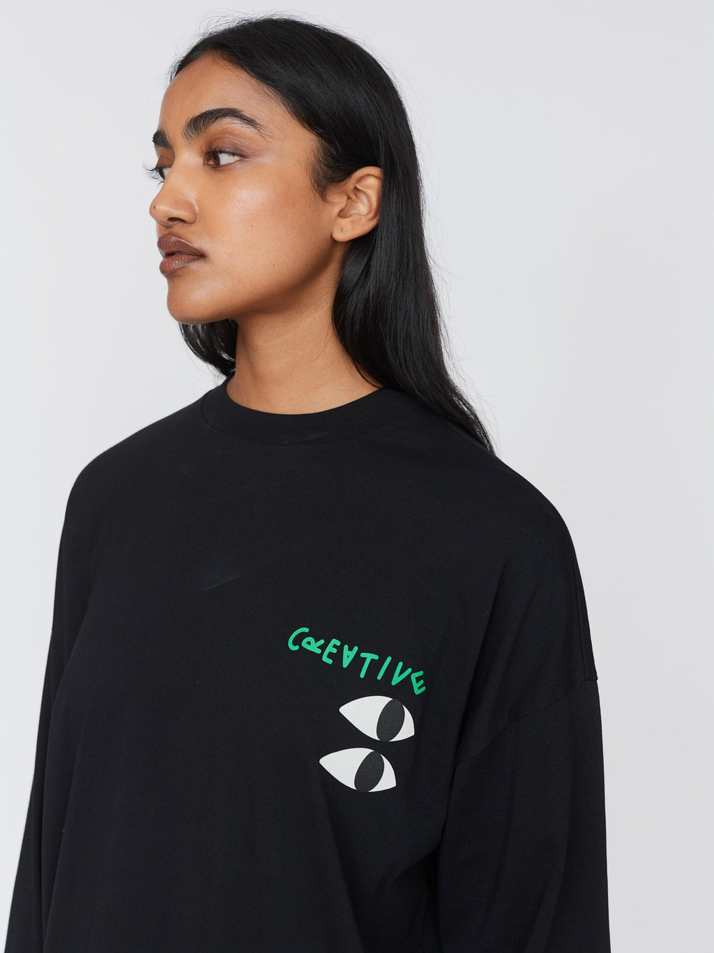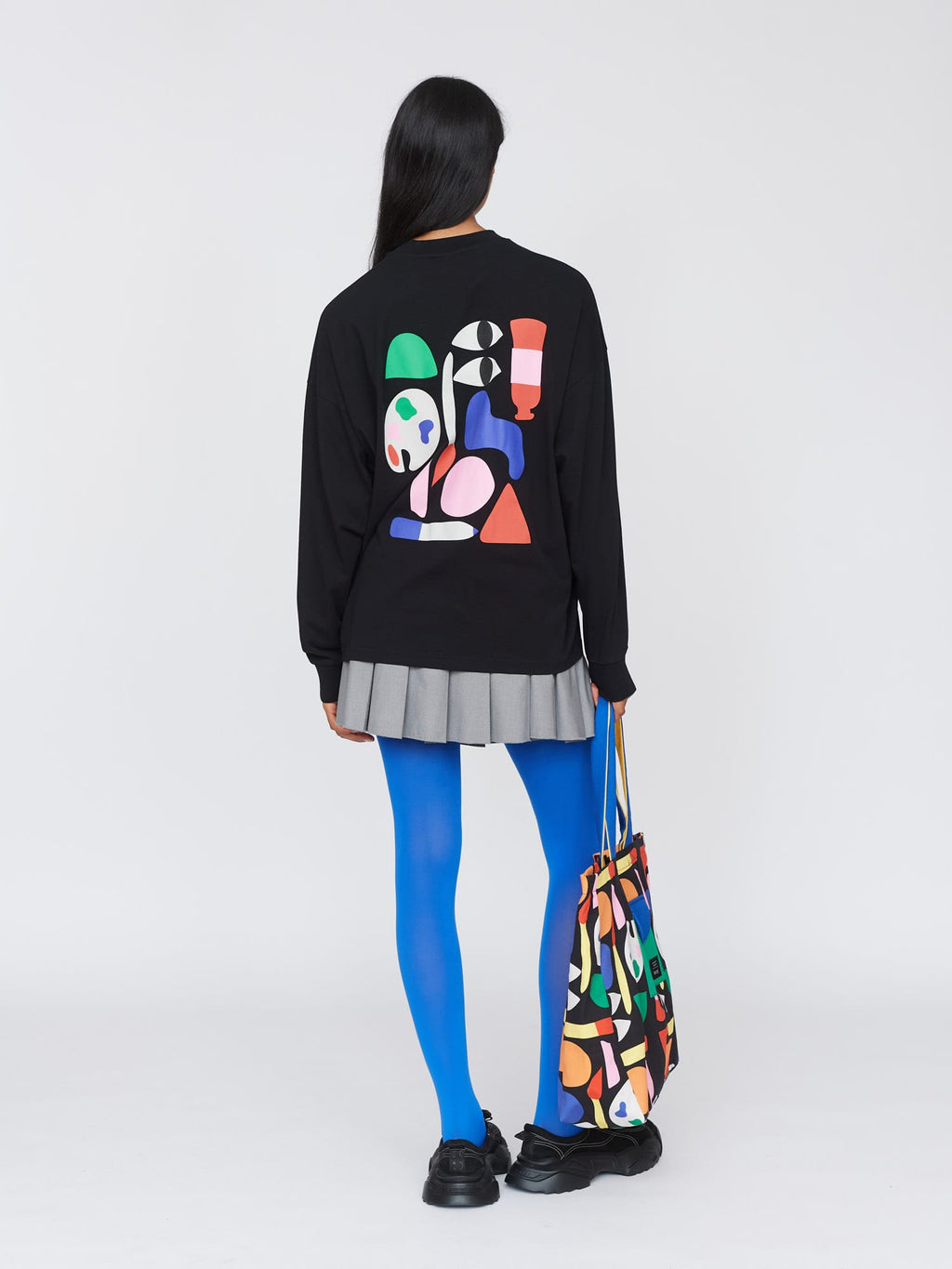 Our classic long sleeve t-shirt shape has a slightly oversized fit with a dropped shoulder and a ribbed neck and cuffs. In black, this limited edition t-shirt has graphic prints on the left of the chest and back, then at the cuff is a woven label. Made from 100% organic cotton, this garment features a custom LO - TATE labelling and tag.