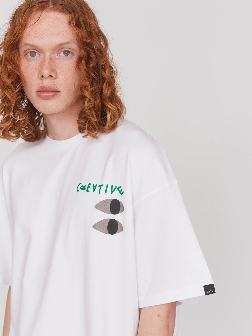Made from 100% organic cotton, our unisex tee shape has a relaxed, true to size fit with a slightly dropped shoulder and a ribbed neck trim. In white, this tee features custom LO - Tate graphics and labelling along with a woven label at the cuff.