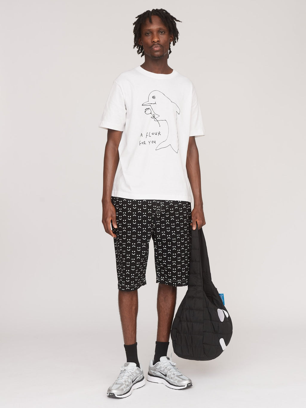 In 100% organic cotton, this unisex tee is part of our print shop collection, a limited edition run of embroidered and printed graphic apparel and accessories. When we say we want a flower, we really mean flour; this white ribbed neck tee has a contrasting hand-drawn graphic of a dolphin with the text ‘A Flour for You’.