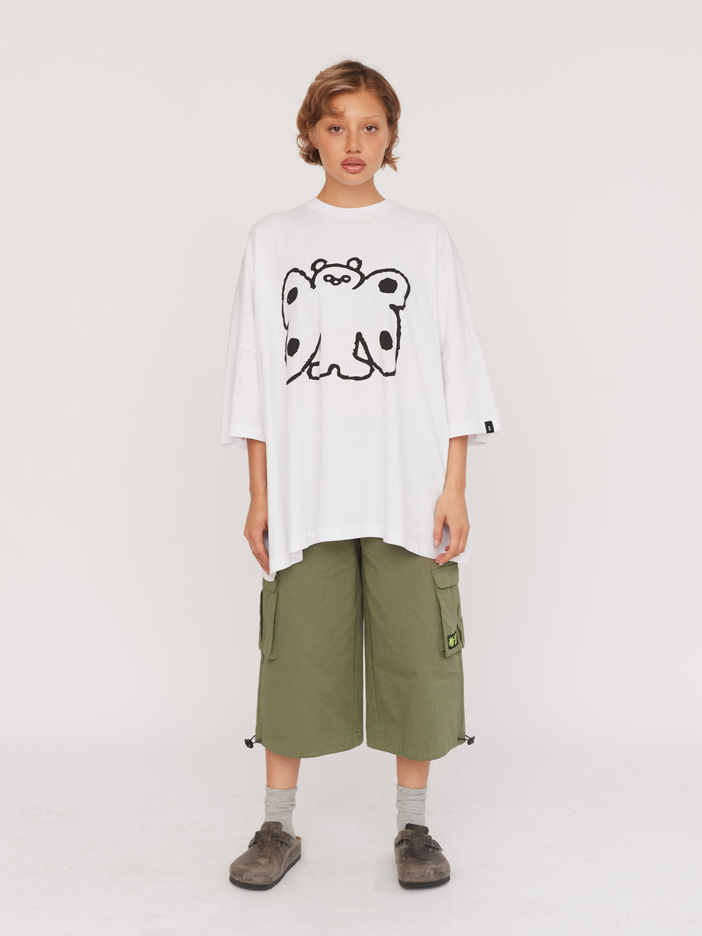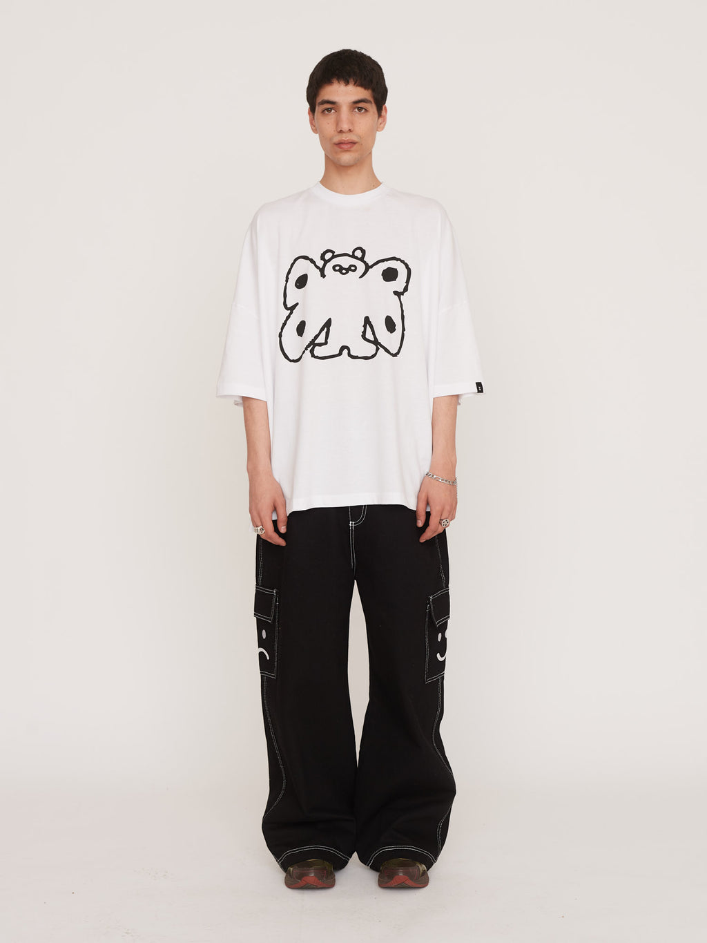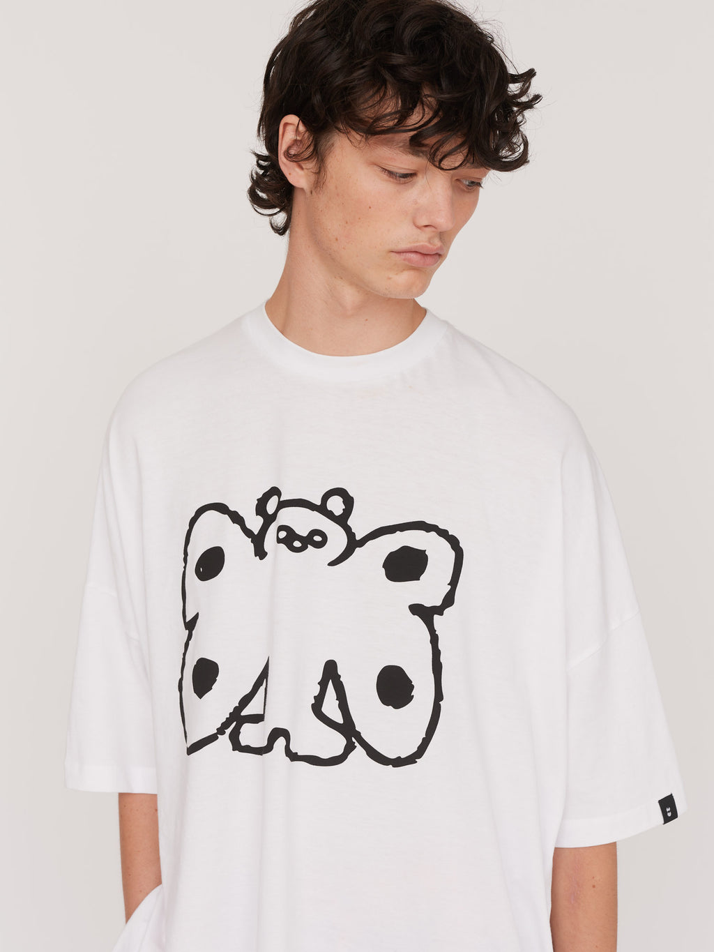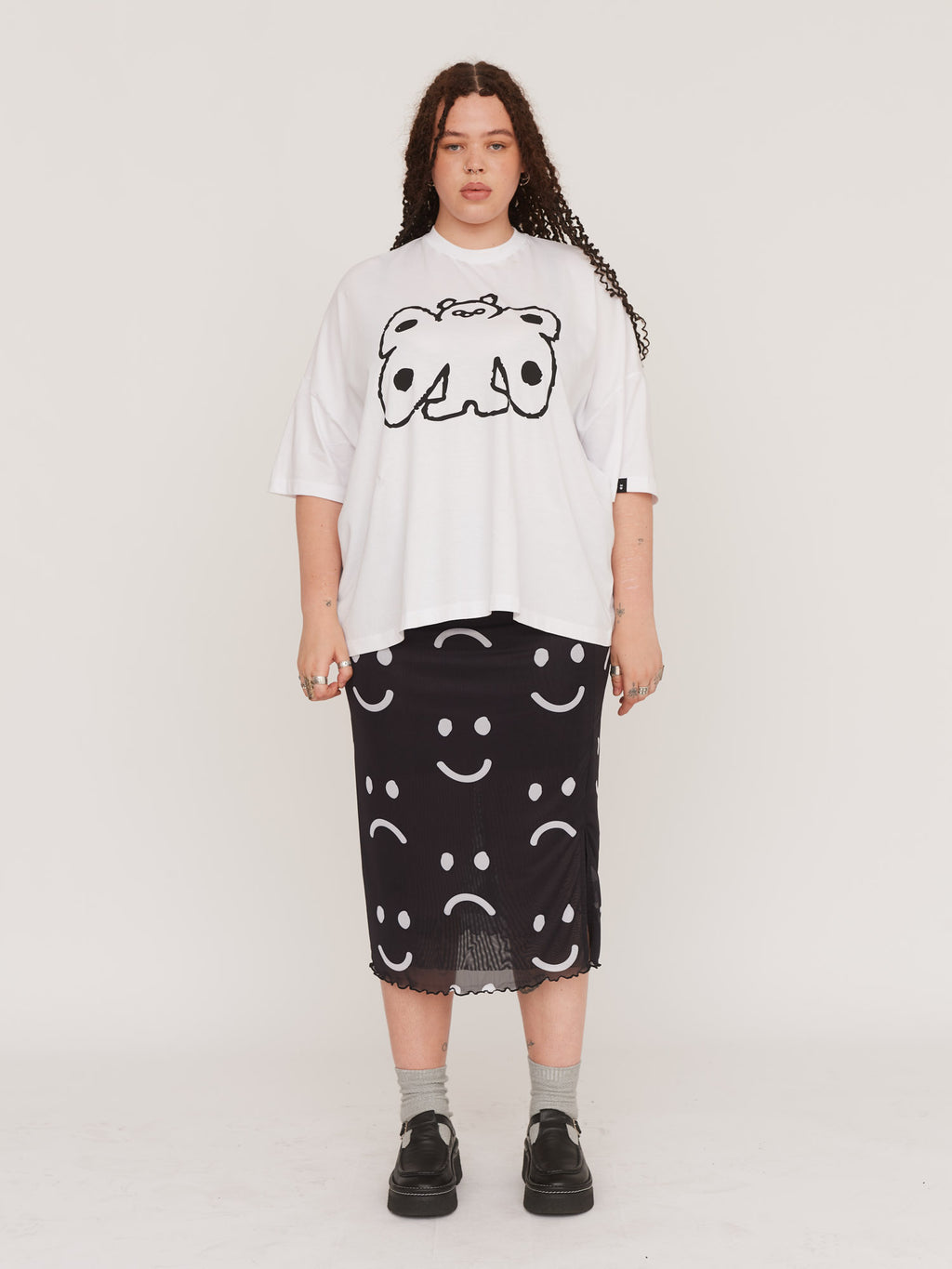 For the days when you wish you could wear your pyjamas out the house, here’s a tee for you. This 100% cotton white t-shirt is in our well-loved genderless big square shape, with a drop shoulder and ribbed neck. It features a black butterfly graphic on the centre of the chest, with a garden party graphic on the back by Larissa Laban (@larissalaban). Can someone get us on the guestlist for this?!