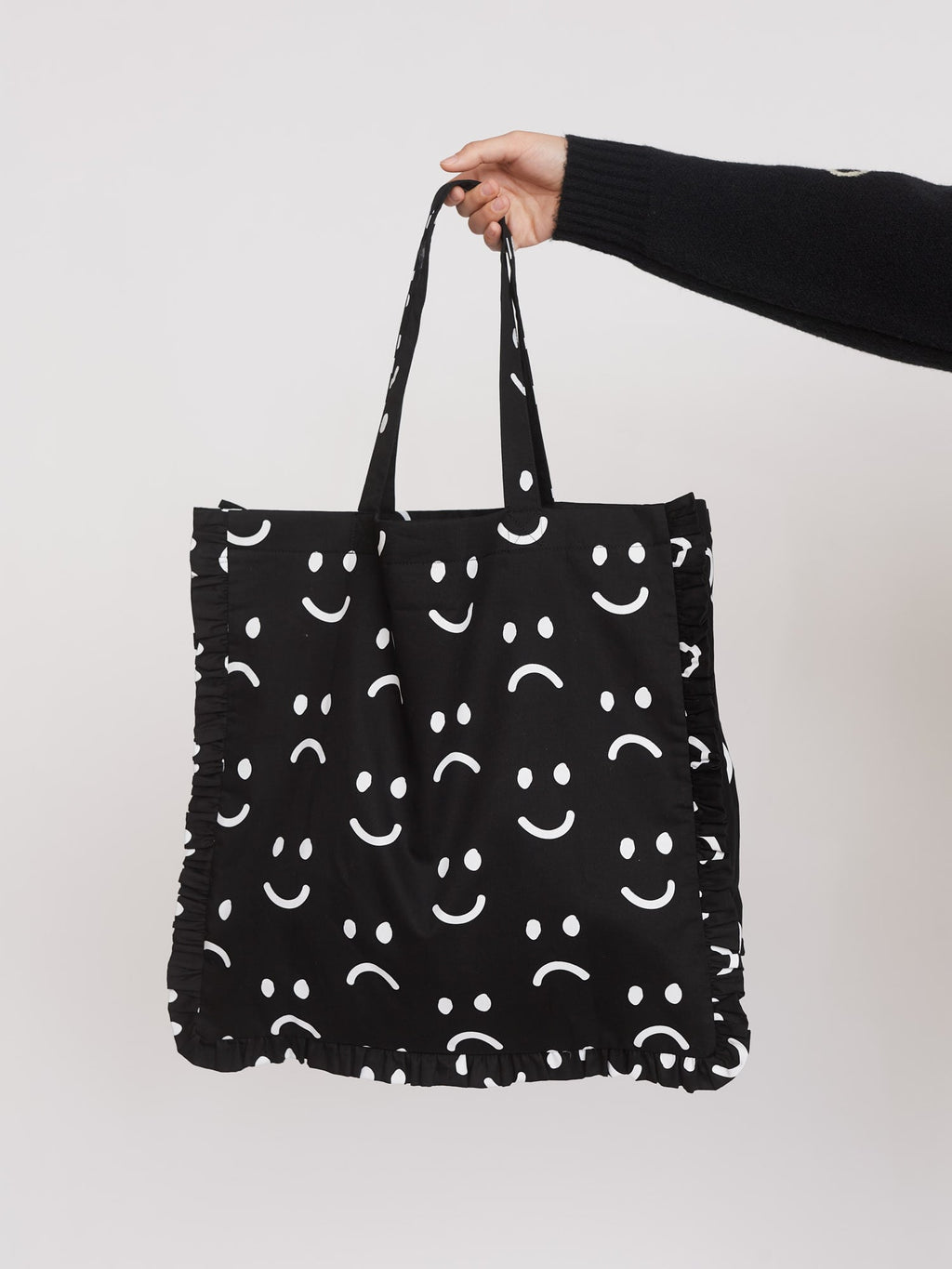 In our signature Happy Sad graphic, this tote bag has a ruffle edge detail with a woven patch label on the front. Comfortably able to fit a 13” laptop, it’ll be the perfect everyday bag to show off all your conflicting emotions.