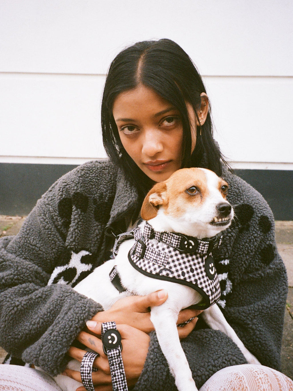This neoprene harness has a breathable, padded air mesh contrast neon green inner lining, as well as fully adjustable neck and chest straps. All of these features give comfort to your four-legged pal so all they’ve got to stress about is sniffing and pissing, plus the quick-drying material is perfect if they take a mid-walk dip. On the chest is a rubberised happy face and on the back is a sturdy D-ring attachment for your lead. In a printed Happy Sad gingham with an Oaf woven pip label; you can complete your dog’s look with the Happy Sad Gingham Dog collar, poop bag holder and lead.