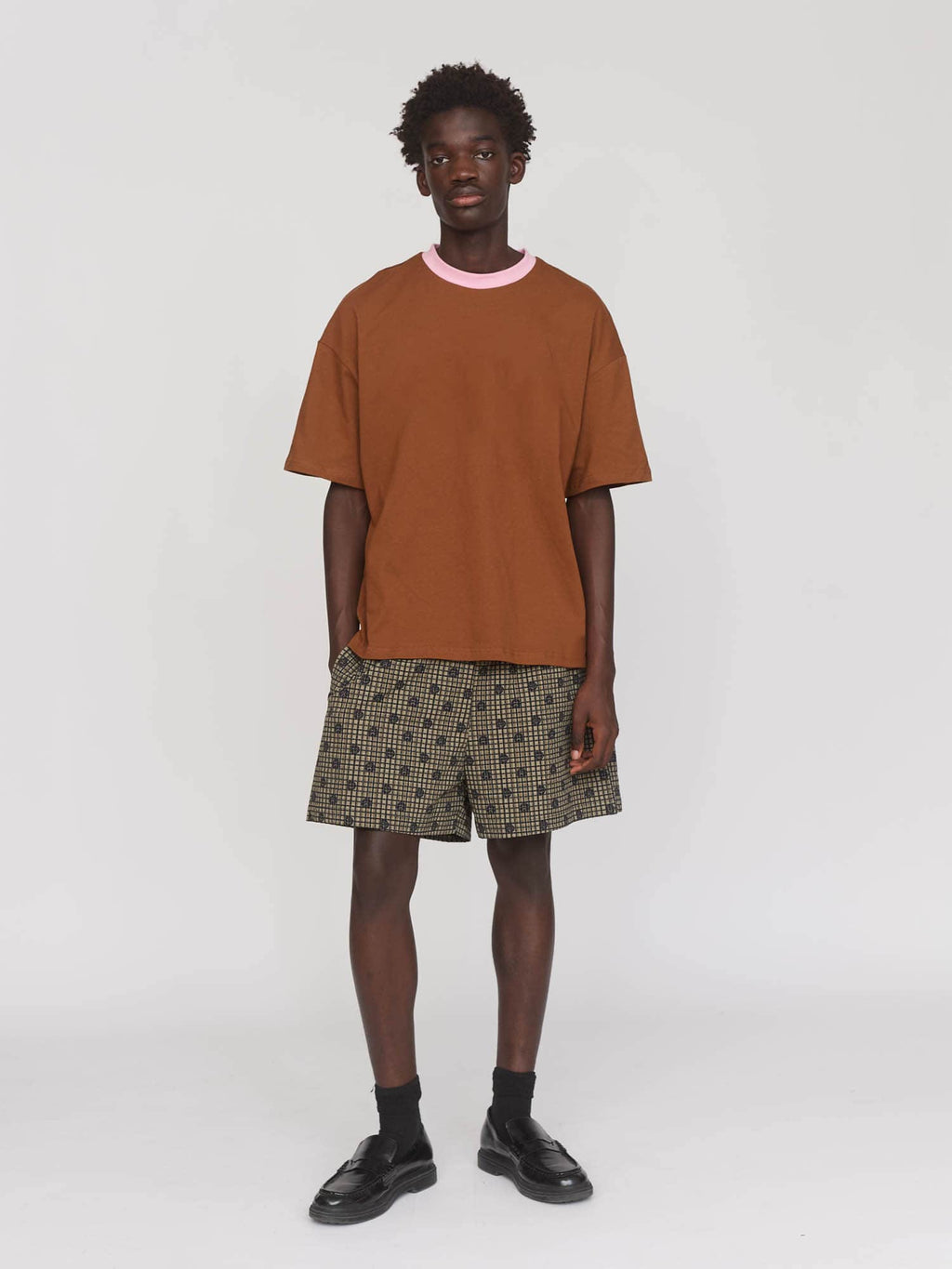 These pull-on shorts are gonna be your partner in crime for the summer days ahead. In khaki green, they have contrast black and white check print with polka dot Happy Sad faces all over. They have a fully elasticated waistband and are made from a lightweight, textured fabric helping to keep you cool as a cucumber. With side seam pockets, along with a back patch pocket; why not style these with our Drawn to Flowers Check Shirt?