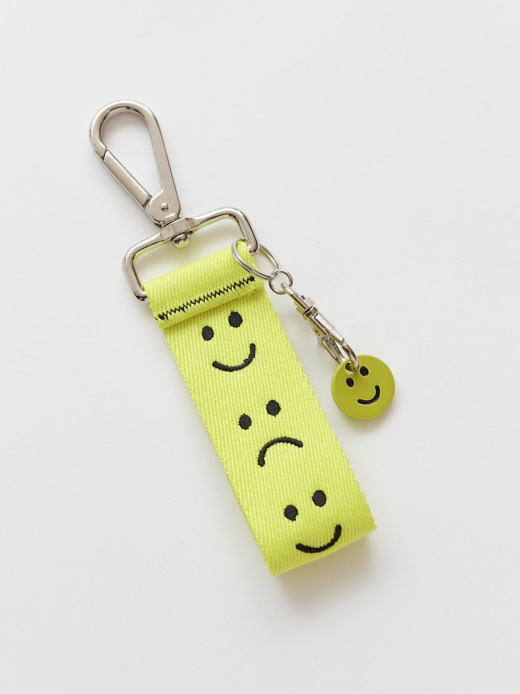 Once this keyring enters your life, we guarantee you’ll spend less of your life saying ‘Where are my keys’. This chunky keyring has our iconic Happy Sad print across and comes in a bold neon green colour. It has a metal ring and clasp with a mini tag, that can be used as a trolley coin, with a happy and sad face on either side. Whack this on your keys and thank us later.