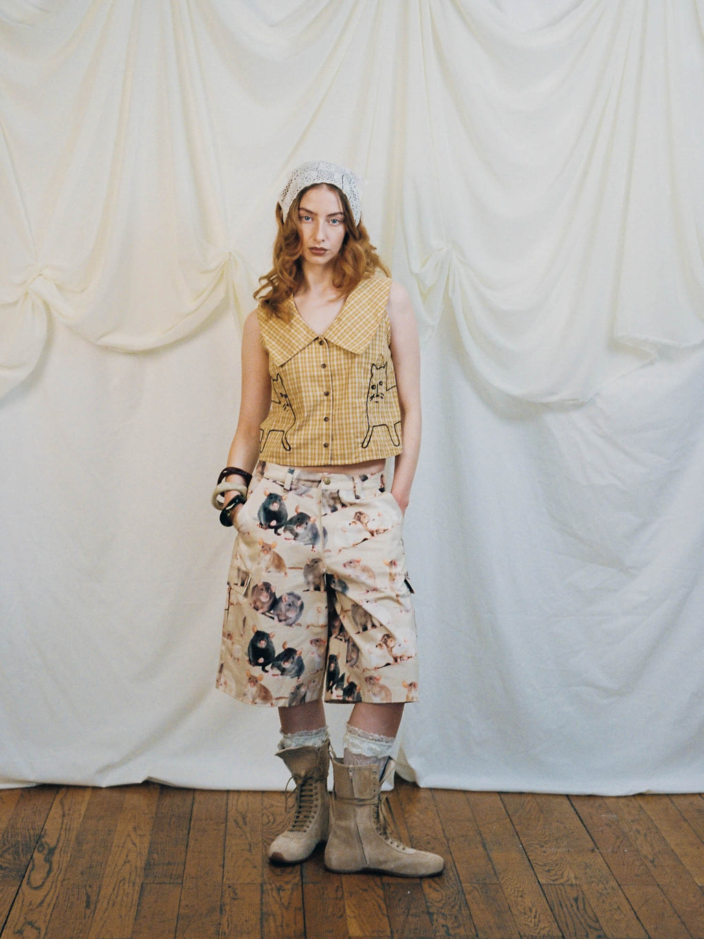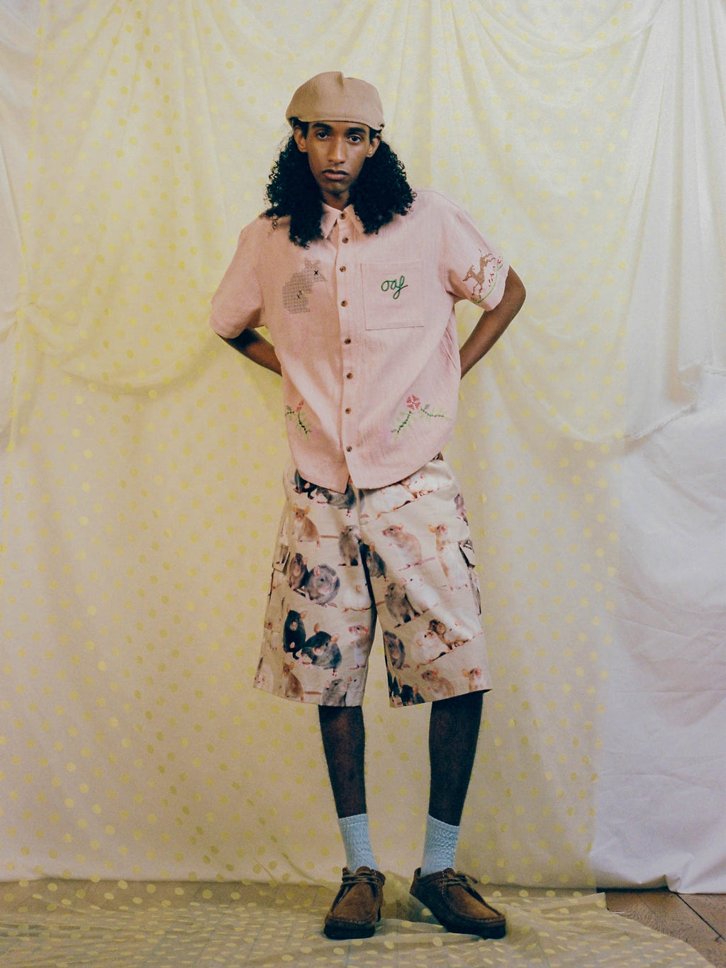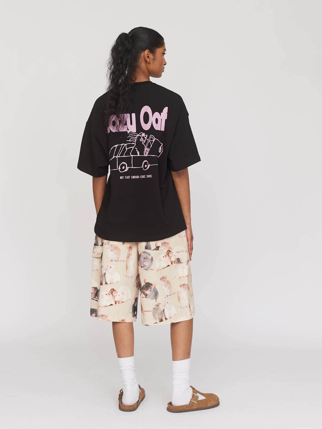 These cargo shorts have a relaxed fit and are made from a lightweight, 100% cotton twill making them the perfect accomplice on the hotter days. They have side seam as well as leg and back cargo pockets which’ll be the perfect home for all your everyday essentials. In beige, they have an all over rat print which is unique in placement from garment to garment. Show everyone you don’t mess around when it comes to rats by pairing with our Away With The Rats Shirt.