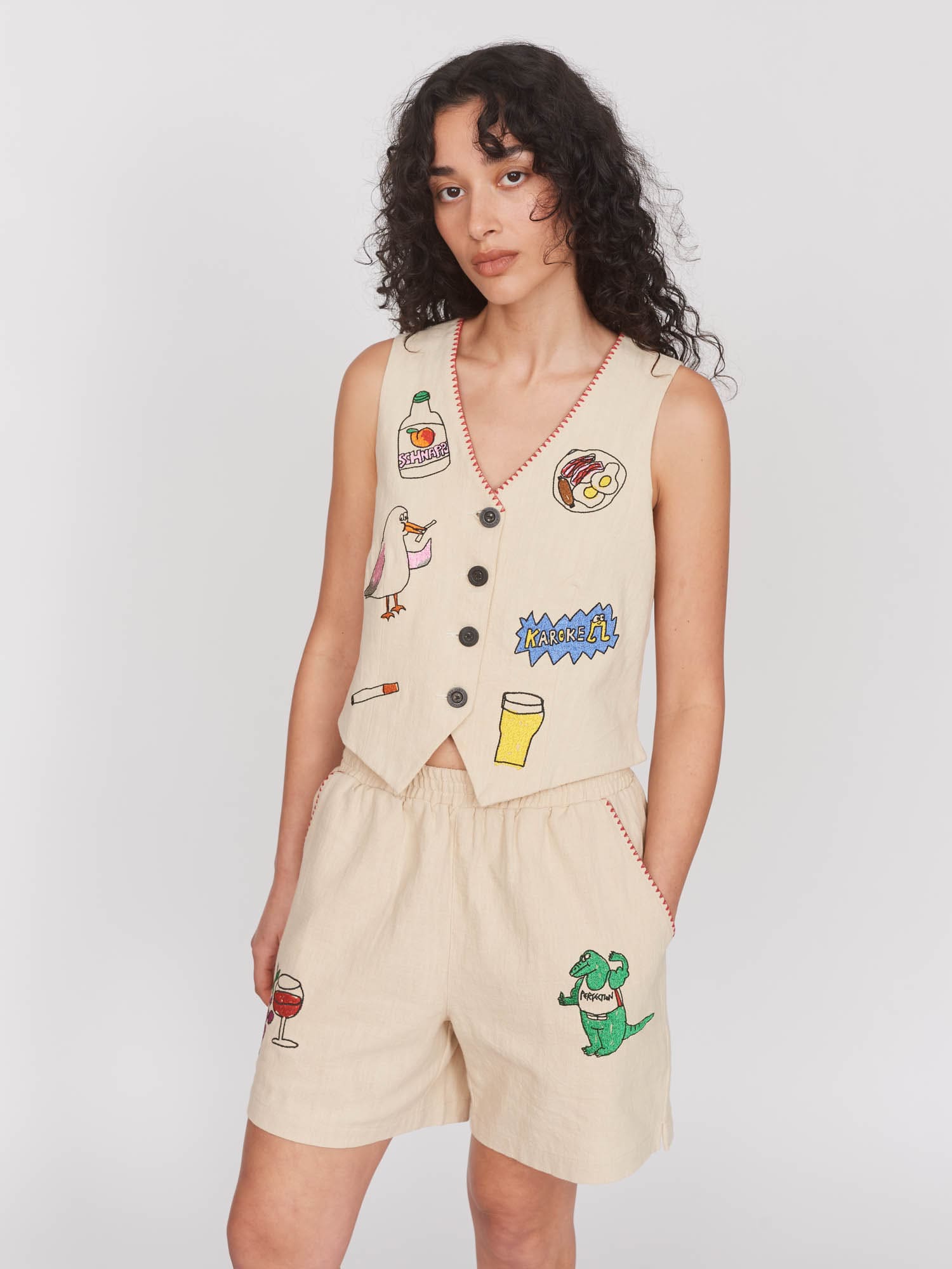 Need a look for your next night out? Look no further than this statement co-ord. Featuring a matching print by artist Michele Bry, this sleeveless top and midi skirt are made from a heavier-weight cotton blend fabric to give a fitted, but comfortable, silhouette. Style this set with our Sneaky Ballet Flats and you’ll be ready for wherever your night takes you.