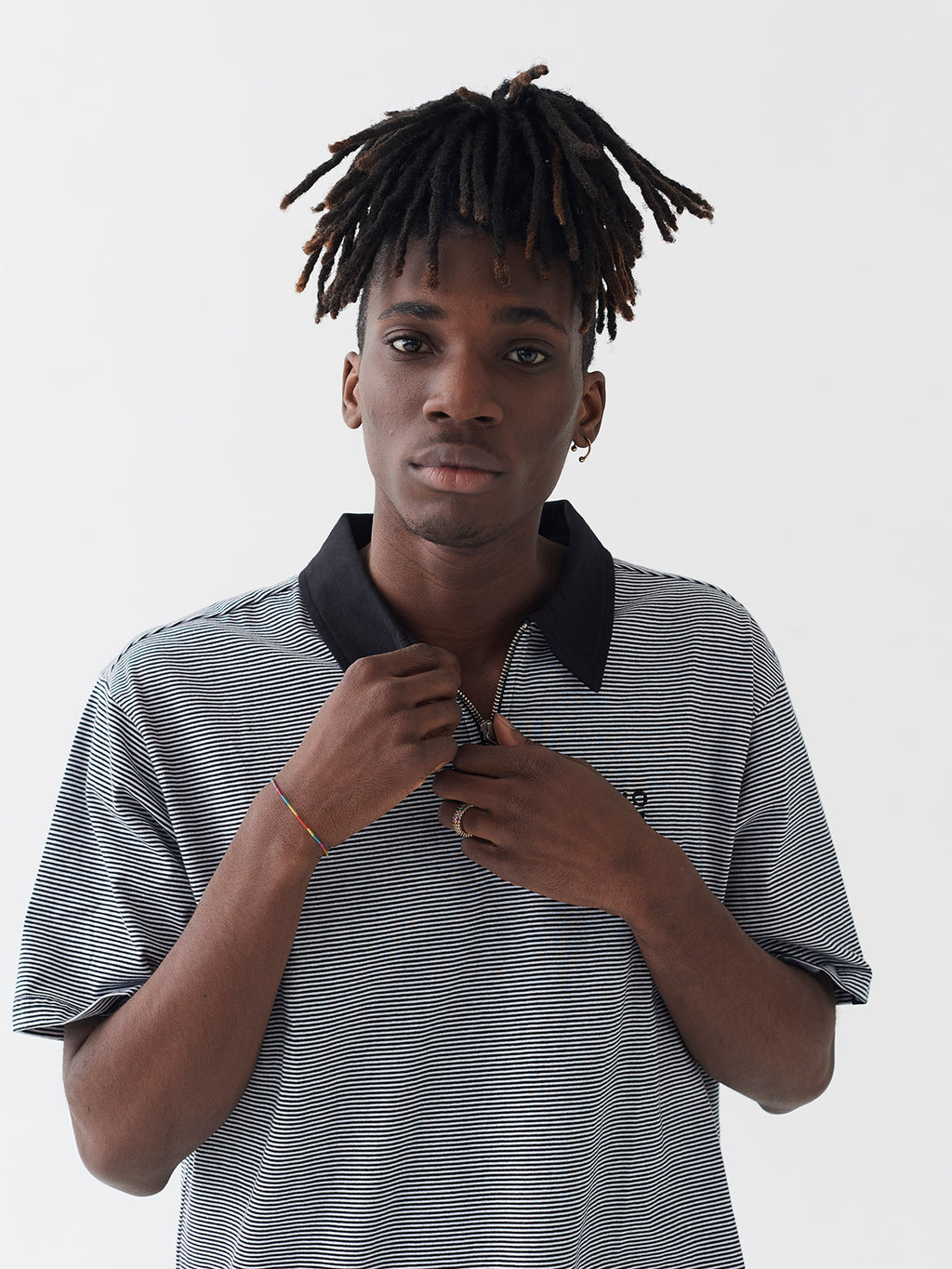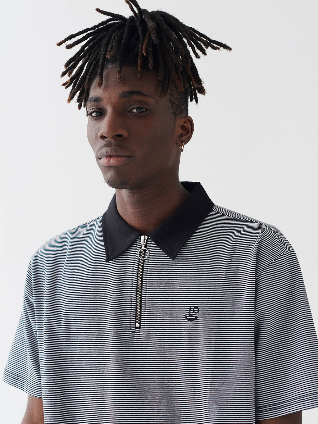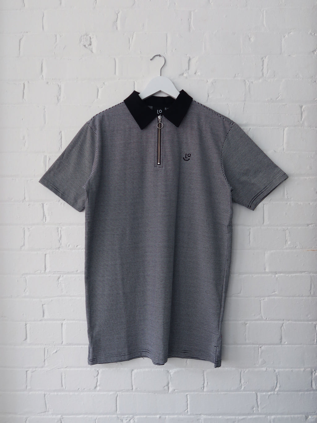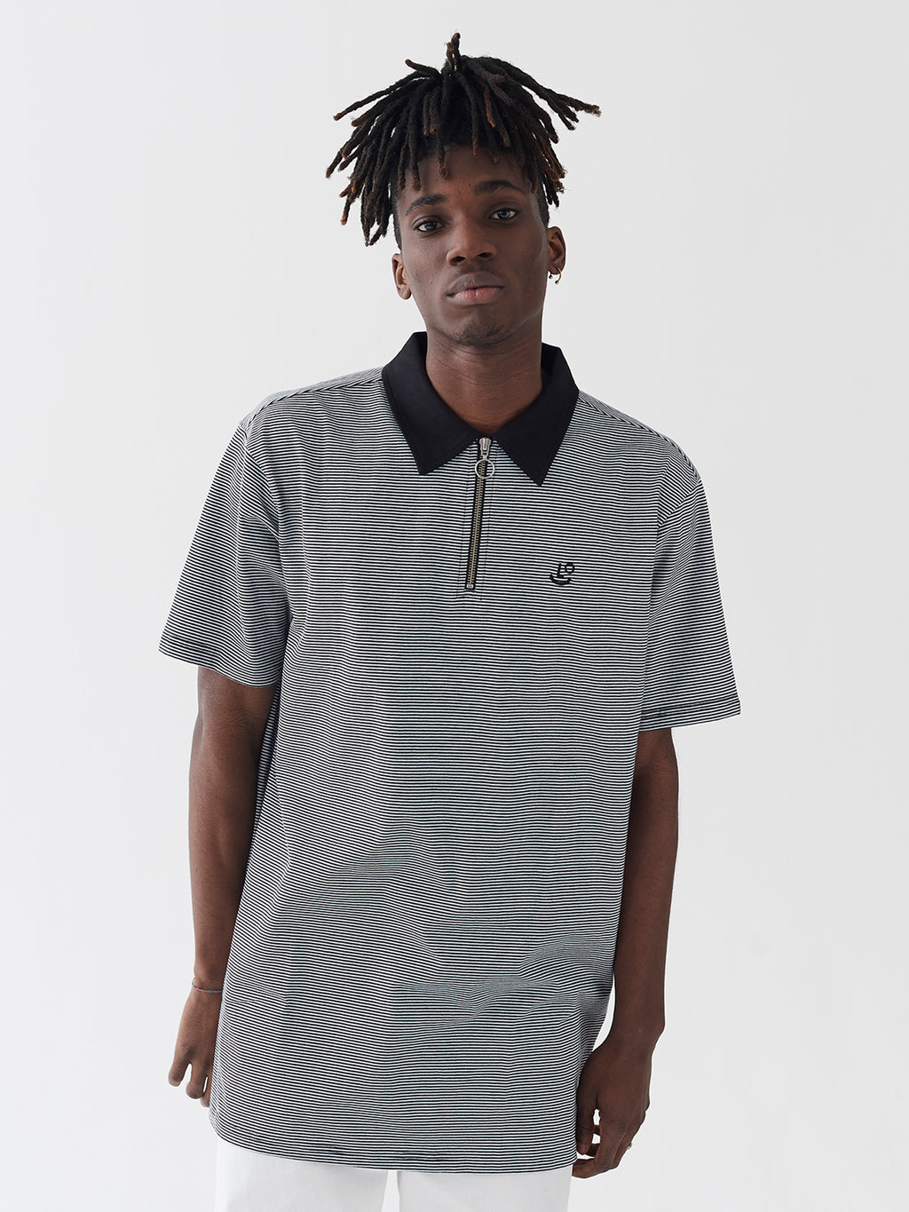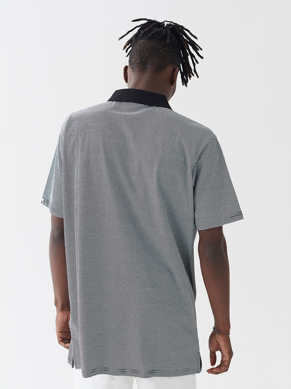 - Relaxed fit polo shirt in tiny black and white stripe