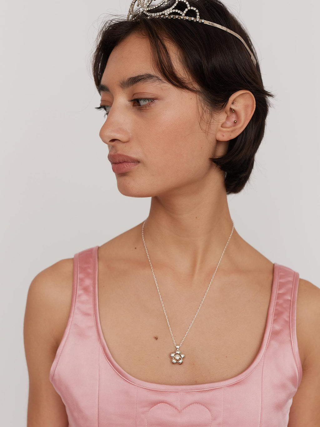 This mixed mood flower necklace is a part of our collaboration with independent jewellery brand, Good Daze, and is available in both sterling silver and 18k gold vermeil. The centre of the pendant spins round to show either a happy or a sad face, and it’s on an 18” chain meaning it sits nicely around the mid-chest. All of the pieces in the collection were designed on 3D drawing software by Good Daze founder, Rosie Greener, before being printed into wax and then cast in metal. Each of these steps takes place in small workshops around London, and every piece comes in a branded box and with a care card.The details:- Pendant spins showing happy & sad face