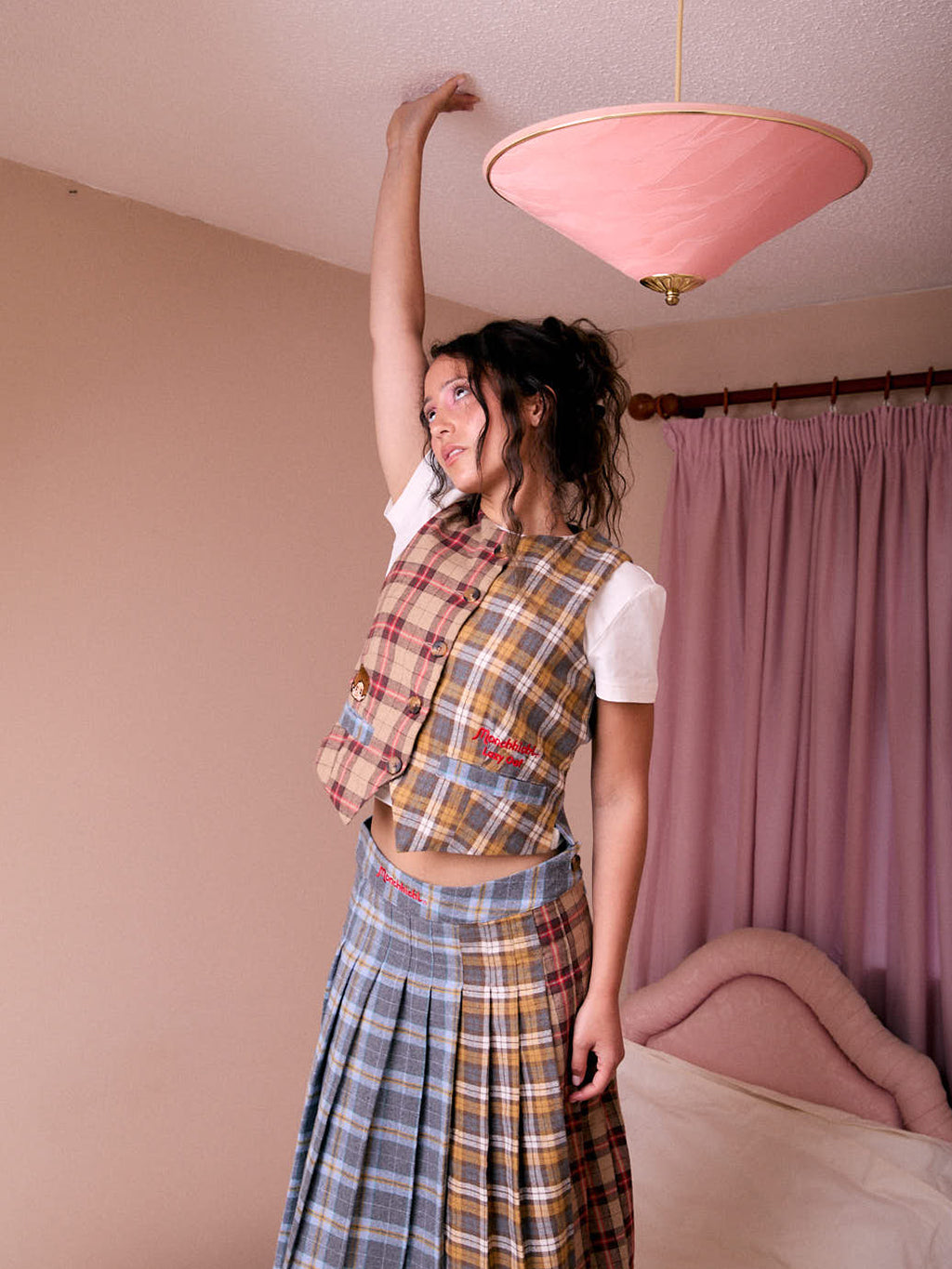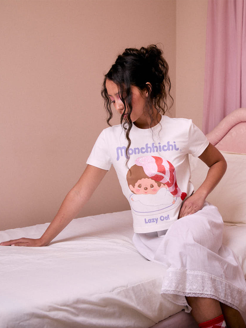 Our tights are made from a super soft and stretchy nylon elastane blend, and are a semi-opaque 40 denier. In a blue gingham, they have contrasting Monchhichi character details printed across them. Style with our Monchhichi X Lazy Oaf Shirt Dress for a perfect look on a colder day.