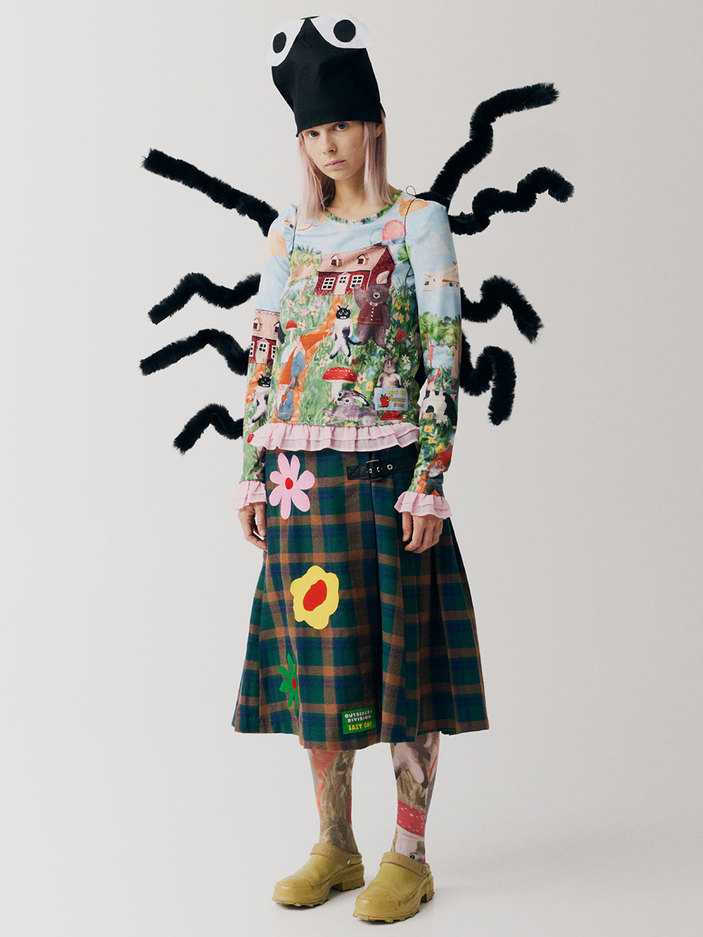 This limited puffer is the piece us and Outsiders have been dying to show to the world. With super soft padding, it has a high collar and of course side seam pocket as well as an internal one. In a shower resistant finish, it’s fully lined and is fastenable by red, metal snap closures down the centre of the chest. At the hem, there’s a concealed bungee cord with pig nose toggles so you can get the fit just right for you. Designed in collaboration with Outsiders Division, it features an all over hand-drawn placement print and at the hem is a custom woven label for the collection. In a sea of normcore jackets, you’ll be the one carrying the maximalist torch through the winter months.