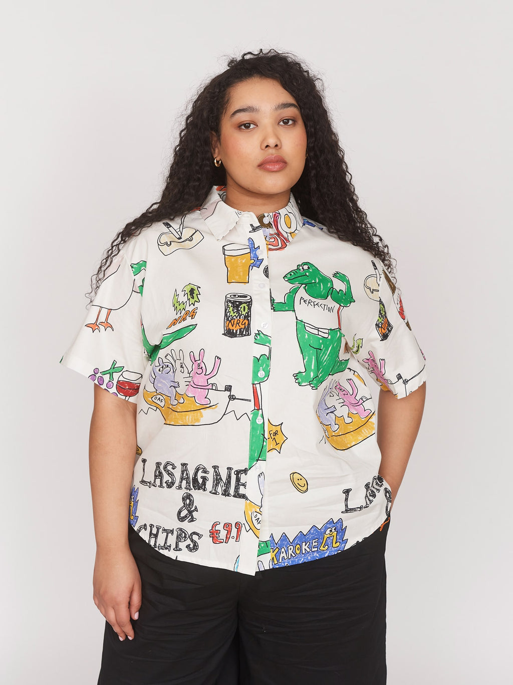 What’s a holiday without a statement shirt? Lame, that’s what. This short sleeve button up has an all over print which is unique from garment to garment, created by our in-house team. It has a back yoke and box pleat detail as well as side slits at the hem to give this relaxed shirt, it’s effortlessly good fit. Commit to the statement and layer it over our On Vacation Sleeveless Dress.