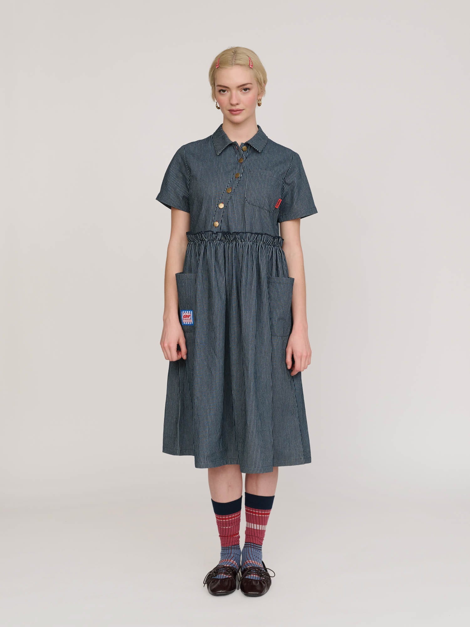This sleeveless midi dress has a scoop neckline, with a concealed zip down the back. True to size, there are shirred, elasticated side panels on either side giving a super comfortable fit. Made up of three textured, check fabrics, it has an all-over Happy Sad flower print in a contrasting yellow. With side seam pockets, it’ll be a treat styled with our Sliced Striped Cardigan and Lazy Loaf Crochet Style Bag.